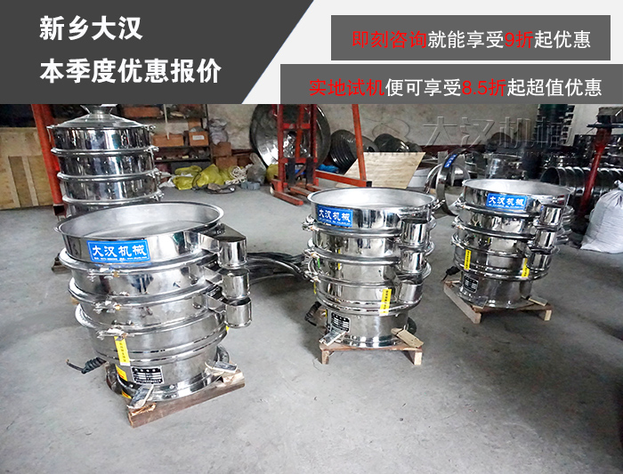 總體來講,大漢食品旋振篩價(jià)格相當(dāng)劃算,如需了解設(shè)備價(jià)格詳情,歡迎隨時(shí)在線詢價(jià)!