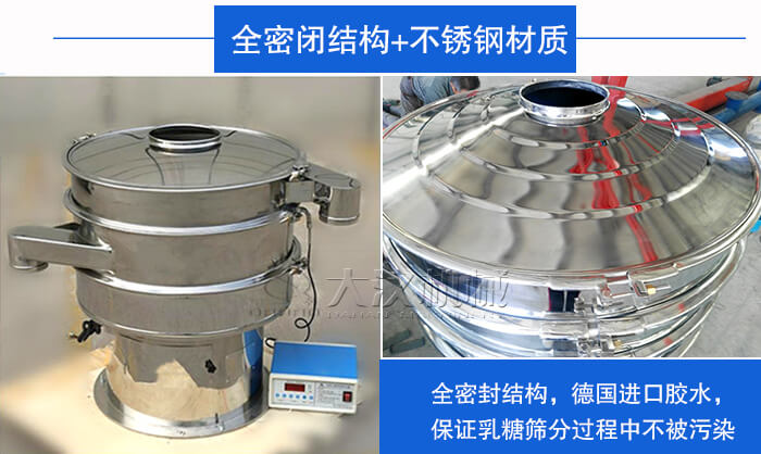 乳糖超聲波振動(dòng)篩以全密封結(jié)構(gòu),再加上硅膠或橡膠材質(zhì)的密封件進(jìn)行密封,然后德國進(jìn)口膠水達(dá)到更好的密封效果,可以保證乳糖篩分過程中不被污染。另外,對于乳糖篩分來說,對其篩分環(huán)境的衛(wèi)生程度也有一定的要求,所以我們的超聲波振動(dòng)篩選取的是304不銹鋼材質(zhì),經(jīng)由技術(shù)人員的拋光處理,操作更安全衛(wèi)生。