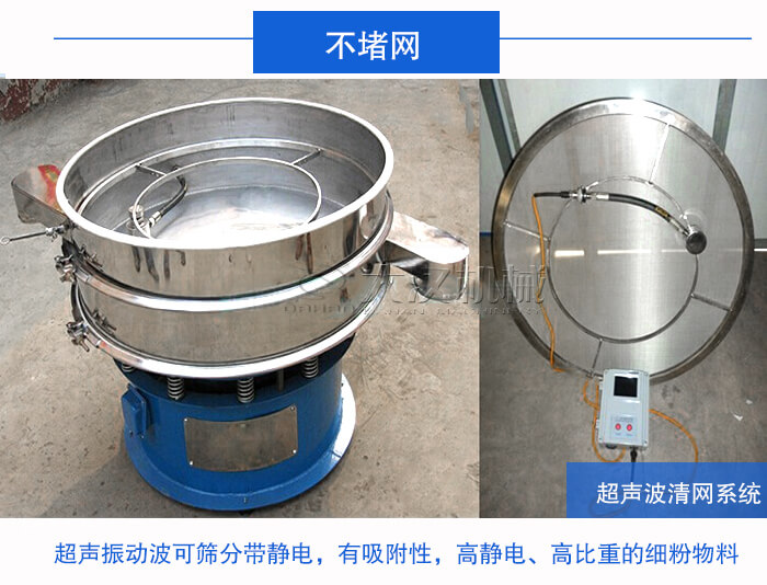 超聲波振動(dòng)篩是在普通旋振篩的基礎(chǔ)上舉行改良,使用了超聲振動(dòng)波,能夠篩分旋振篩不能篩分的細(xì)粉物料比如帶靜電,有吸附性,高靜電、高比重的物料,減少乳糖因粘性導(dǎo)致的堵網(wǎng)現(xiàn)象。