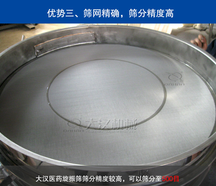對于一些生物科技醫藥公司而言,藥品篩分精度越高,藥效就越好,大漢醫藥旋振篩篩分精度較高,可以篩分至500目,不同物料篩分情況不同,需要根據具體物料進行分析。與上料機配合使用,可以實現全自動操作,且里面的雜質,粗料,細料均可以自動排出物料,可以實現生產線上的連續作用。