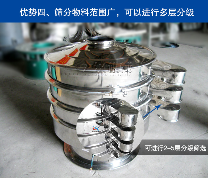制藥行業的物料錯綜復雜,有藥粉,有藥丸還有一些中西藥劑,選擇篩分設備時能夠達到篩分分級,也可實現液體過濾,這時候醫藥旋振篩就派上用場了, 大漢醫藥旋振篩既可以進行單層除雜,也可進行2-5層分級篩選,還可以實現對漿液內物料的除雜過濾,一次投料直接篩選出多種物料,功能強大。
