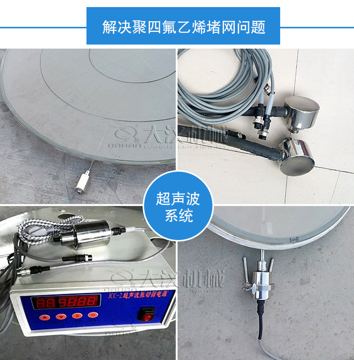 聚四氟乙烯在篩分時(shí)由于其物料性質(zhì)所以會(huì)容易出現(xiàn)堵網(wǎng)問(wèn)題,超聲波旋振篩獨(dú)特的超聲波系統(tǒng)可以將可以將220V、50Hz或110V、60Hz電能轉(zhuǎn)化為18KHz的高頻電能,輸入超聲換能器,將其變成18KHz機(jī)械振動(dòng),加快物料的分離,減少篩上物,可以解決聚四氟乙烯堵網(wǎng)問(wèn)題。