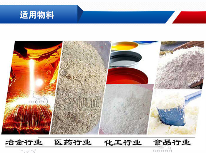 化工行業(yè):樹脂粉、顏料、洗衣粉、微粉、油漆、純堿、檸檬粉、橡膠、塑料等。