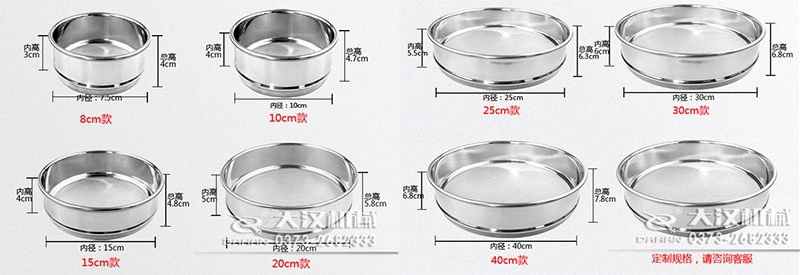 8英寸/12英寸/18英寸標準試驗篩:篩網直徑分別為8英寸(203mm)、12英寸(304.8mm)和18英寸(457.2mm),可選擇不同層數的篩網。