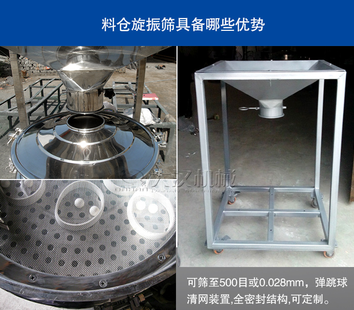關于設備質量:料倉旋振篩采用不銹鋼或碳鋼材質,做工精良,其質量要比廠家更優,壽命延長3-5年左右。