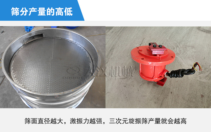 篩分精度代表著成品質量,而決定三次元旋振篩篩分精度是電機激振力、篩面有效篩分面積、篩網孔徑,用戶在選擇是應根據生產要求合理選擇。