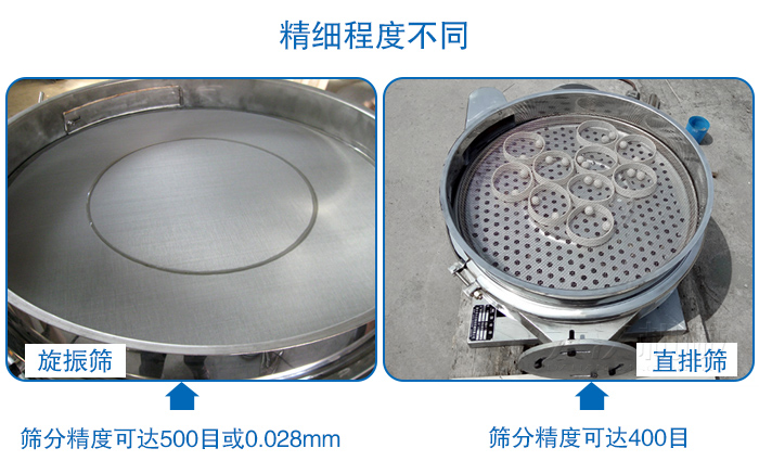 直排篩則多用于面粉、淀粉、洗衣粉、金屬粉、添加劑、化工、非礦等行業(yè)的顆粒粉末的粗略篩分、篩分精度可達(dá)400目,處理量大、易與生產(chǎn)線結(jié)合。