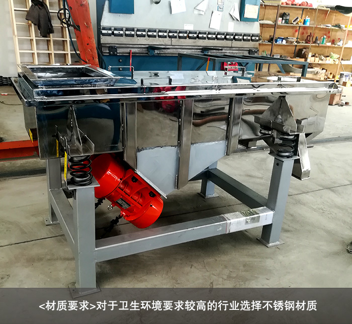 大漢螺帽分級直線振動篩通常是采用的碳鋼材質制作而成,但是有些對于衛生環境要求較高的行業選擇不銹鋼材質;通常不銹鋼材質有全不銹鋼材質和不銹鋼+碳鋼材質這兩種。全不銹鋼材質的振動篩全機身采用不銹鋼制作而成,造價相對較高;不銹鋼+碳鋼或者是全碳鋼材質的直線振動篩價格更低一些。