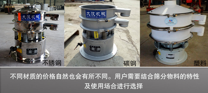 DH-400旋振篩DH-400旋振篩材質(zhì)有碳鋼、不銹鋼、塑料等3種,不同材質(zhì)之間會(huì)存在原材料采購(gòu)費(fèi)用的不同,所以不同材質(zhì)的價(jià)格自然也會(huì)有所不同。用戶需要結(jié)合篩分物料的特性及使用場(chǎng)合進(jìn)行選擇。